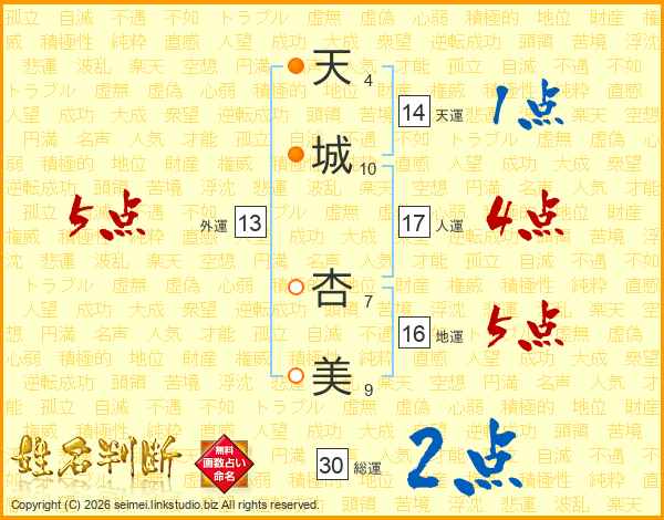 天城杏美さんの総運は30画の2点!