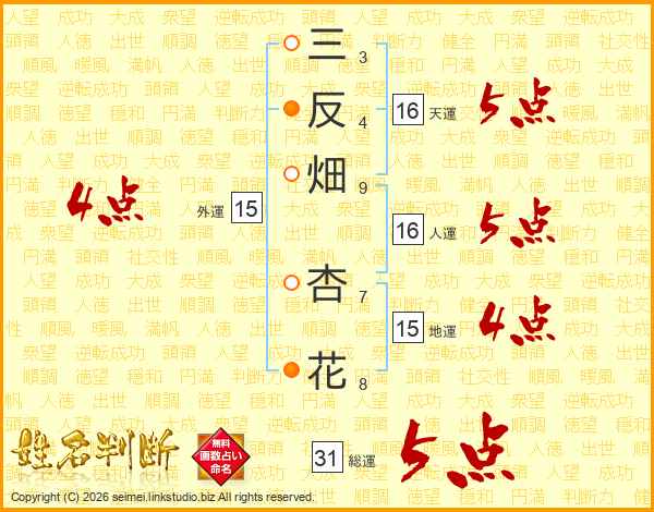 三(3画)反(4画)畑(9画) 杏(7画)花(8画)