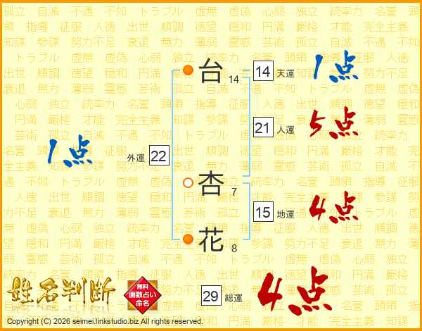台杏花さんの総運は29画の4点!