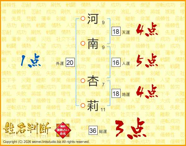 河南杏莉さんの天運は18画の4点!