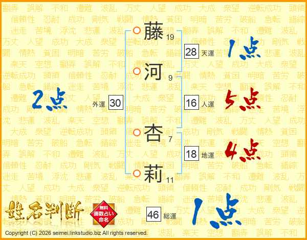 藤河杏莉さんの総運は46画の1点!
