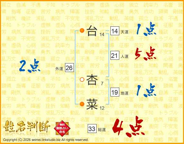 台杏菜さんの総運は33画の4点!