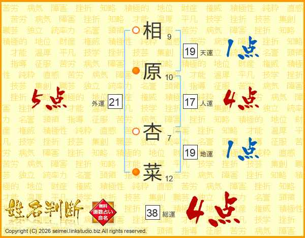 相原杏菜さんの総運は38画の4点!