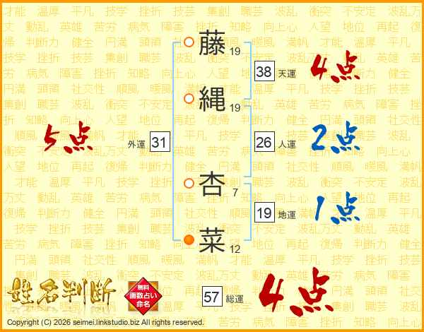 藤縄杏菜さんの天運は38画の4点!
