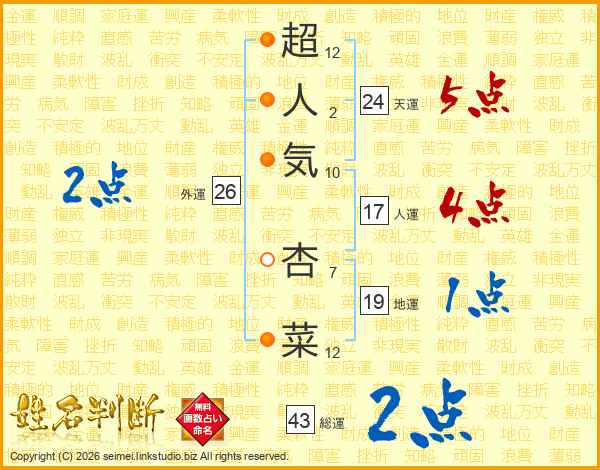 超人気杏菜さんの総運は43画の2点!
