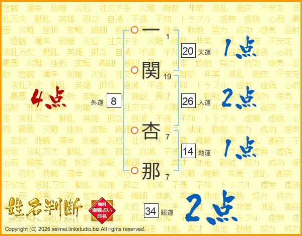 一関杏那さんの天運は20画の1点!