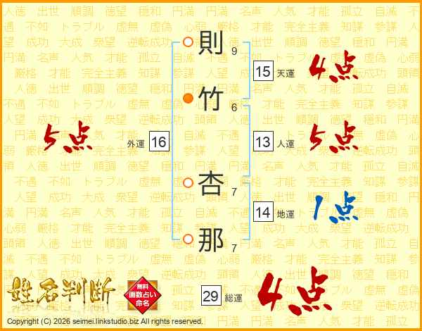 則竹杏那さんの外運は16画の5点!