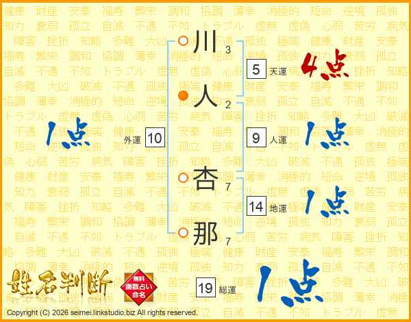 川(3画)人(2画) 杏(7画)那(7画)