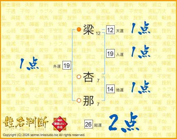梁杏那さんの総運は26画の2点!