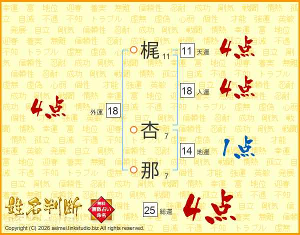 梶杏那さんの外運は18画の4点!