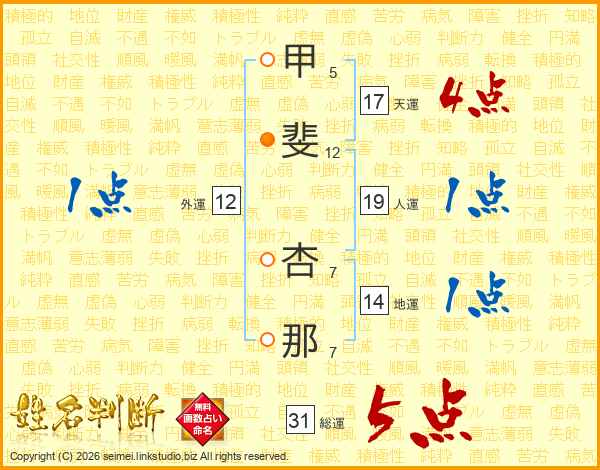 甲斐杏那さんの総運は31画の5点!