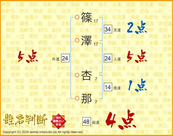 篠澤杏那さんの総運は48画の4点!