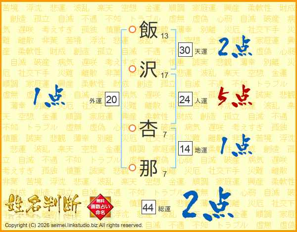 飯沢杏那さんの人運は24画の5点!