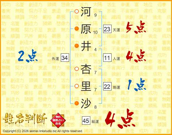 河原井杏里沙さんの総運は45画の4点!
