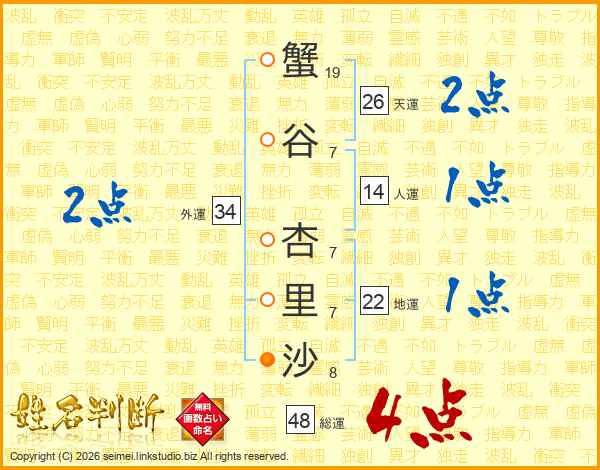蟹谷杏里沙さんの天運は26画の2点!
