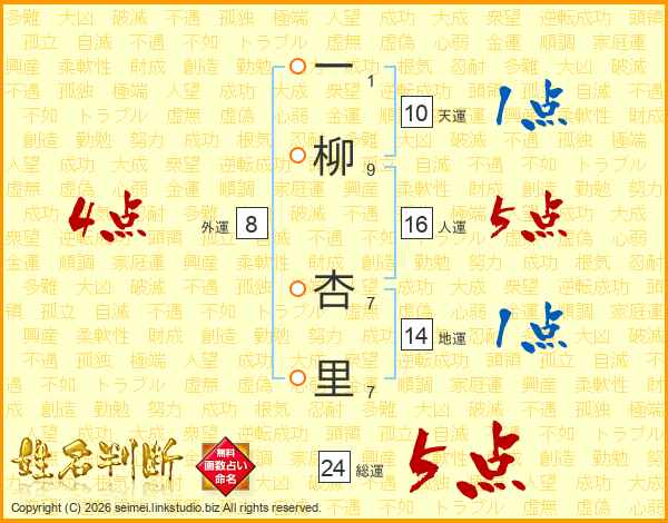 一柳杏里さんの総運は24画の5点!