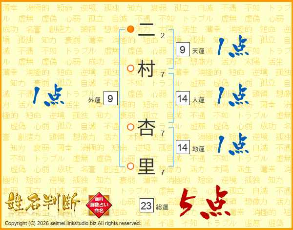 二村杏里さんの総運は23画の5点!