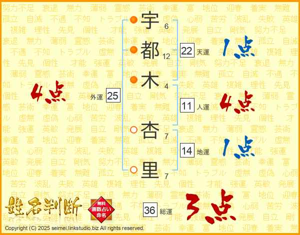 宇都木杏里さんの総運は36画の3点!