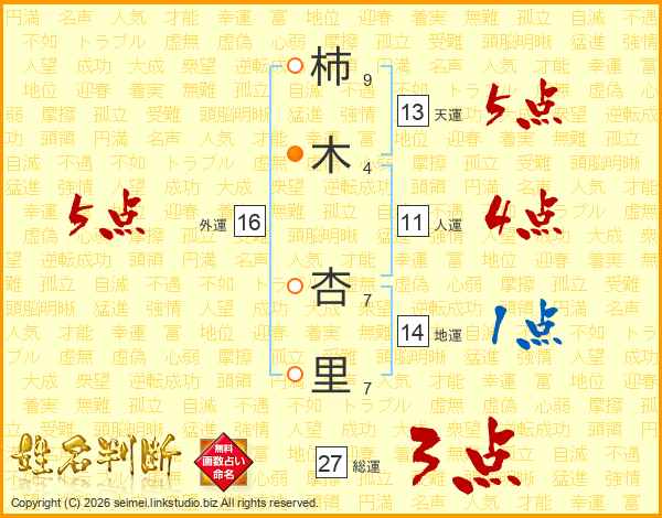 柿木杏里さんの外運は16画の5点!