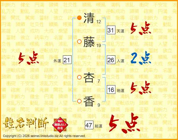 清藤杏香さんの総運は47画の5点!