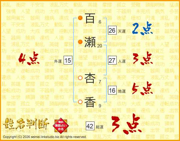 百瀬杏香さんの天運は26画の2点!