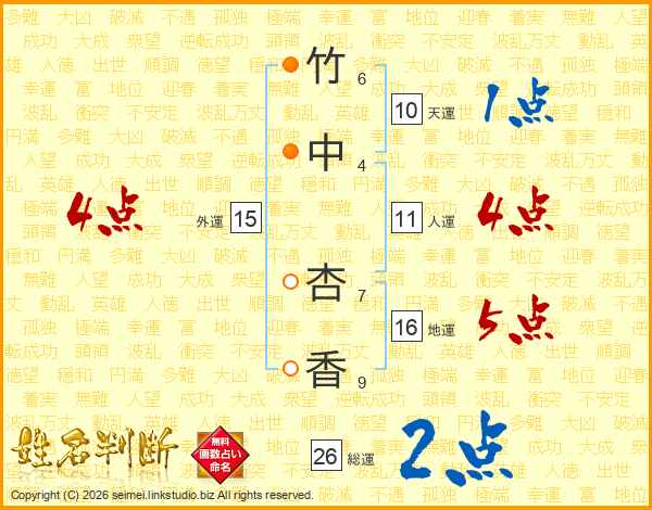 竹中杏香さんの総運は26画の2点!