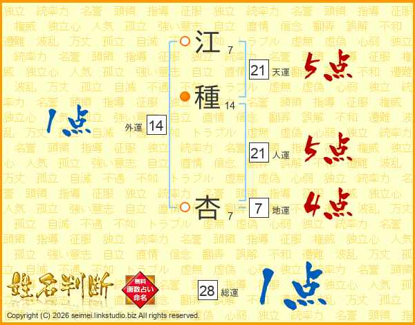 江種杏さんの総運は28画の1点!