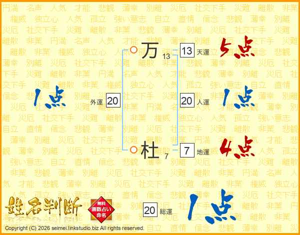 万杜さんの総運は20画の1点!