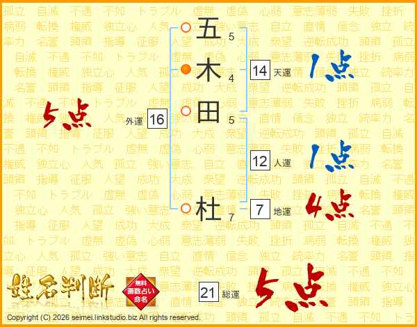 五木田杜さんの総運は21画の5点!