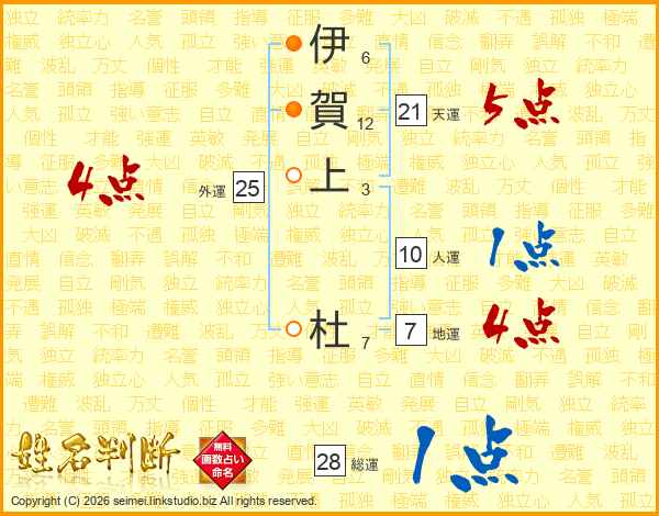 伊賀上杜さんの地運は7画の4点!