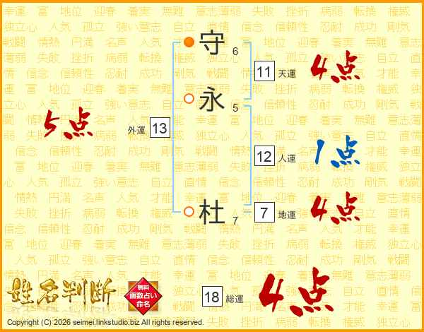 守永杜さんの総運は18画の4点!
