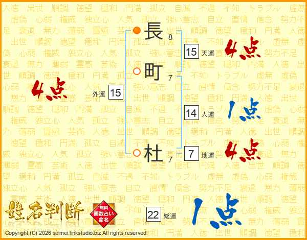 長町杜さんの天運は15画の4点!
