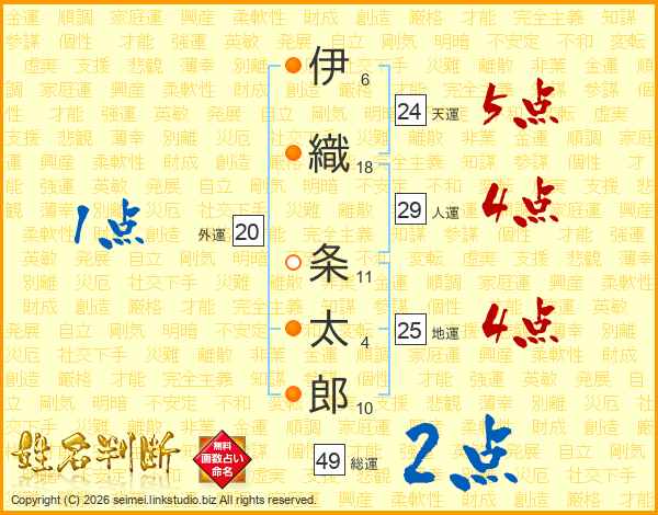 伊織条太郎さんの総運は49画の2点!