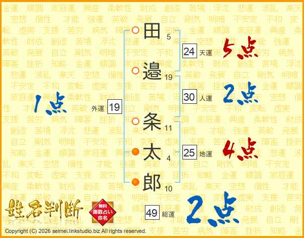 田(5画)邉(19画) 条(11画)太(4画)郎(10画)