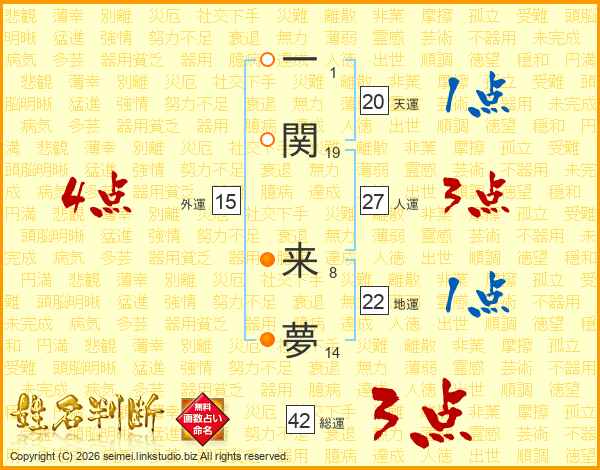 一関来夢さんの人運は27画の3点!