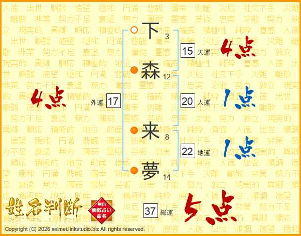 下森来夢さんの総運は37画の5点!