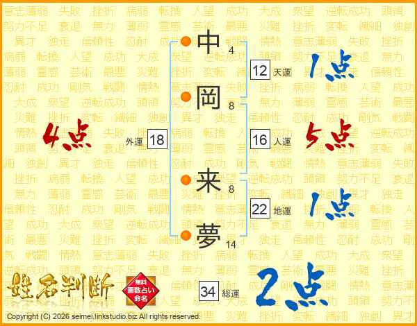 中岡来夢さんの総運は34画の2点!