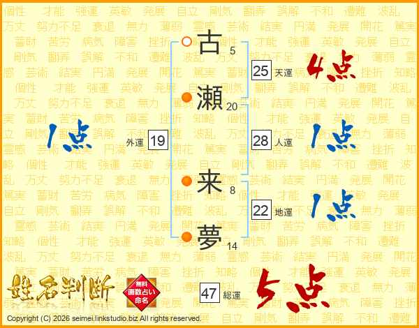 古瀬来夢さんの総運は47画の5点!
