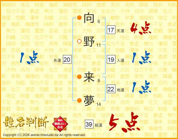 向野来夢さんの総運は39画の5点!