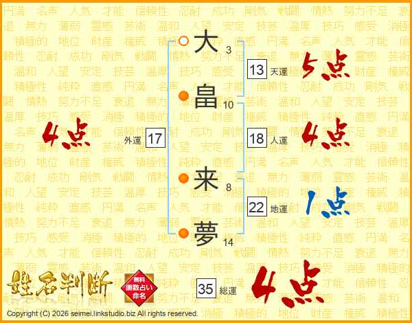 大畠来夢さんの総運は35画の4点!