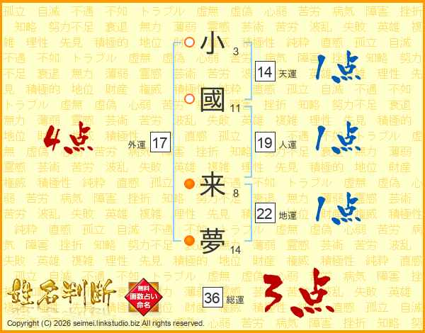 小國来夢さんの天運は14画の1点!