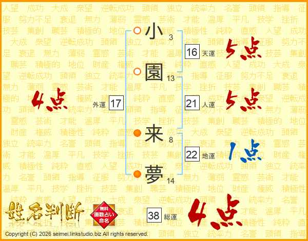 小園来夢さんの総運は38画の4点!