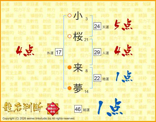 小桜来夢さんの総運は46画の1点!