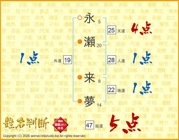 永瀬来夢さんの総運は47画の5点!