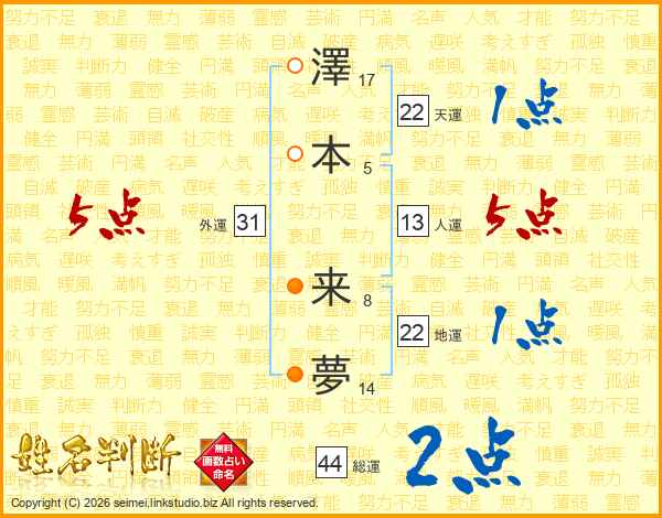 澤本来夢さんの地運は22画の1点!
