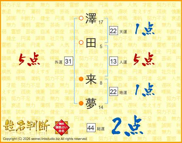 澤田来夢さんの天運は22画の1点!