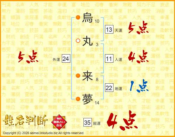 烏丸来夢さんの外運は24画の5点!
