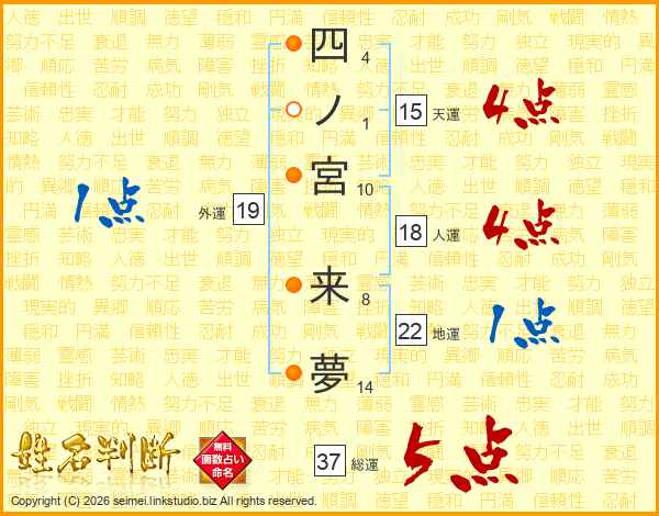 四ノ宮来夢さんの総運は37画の5点!