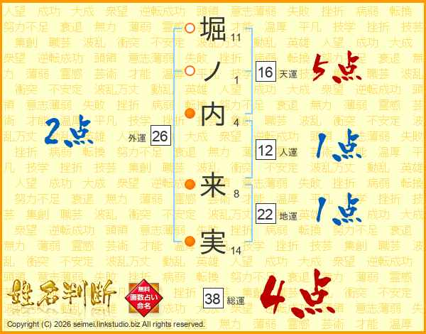 堀ノ内来実さんの総運は38画の4点!