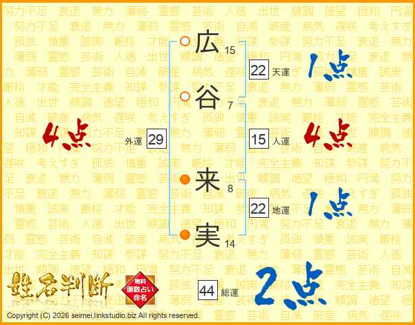 広谷来実さんの総運は44画の2点!